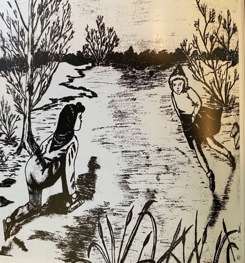 “I have one drawing hanging up in my house that I did years ago. It’s of two girls skating. Then I did one of deer standing in a field. You should look the next time you come over to visit!”