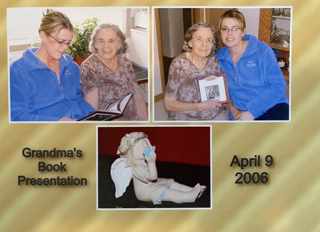 You can bet the next time that I went over to visit her, I grabbed her picture and put a copy of it in her book!! I absolutely cherish this picture – a piece of my Grandma’s art. At the very end of the book I included some pictures of her and I together and I wrote something special just from me to her. I won’t read all of it but one part I will share is the following: